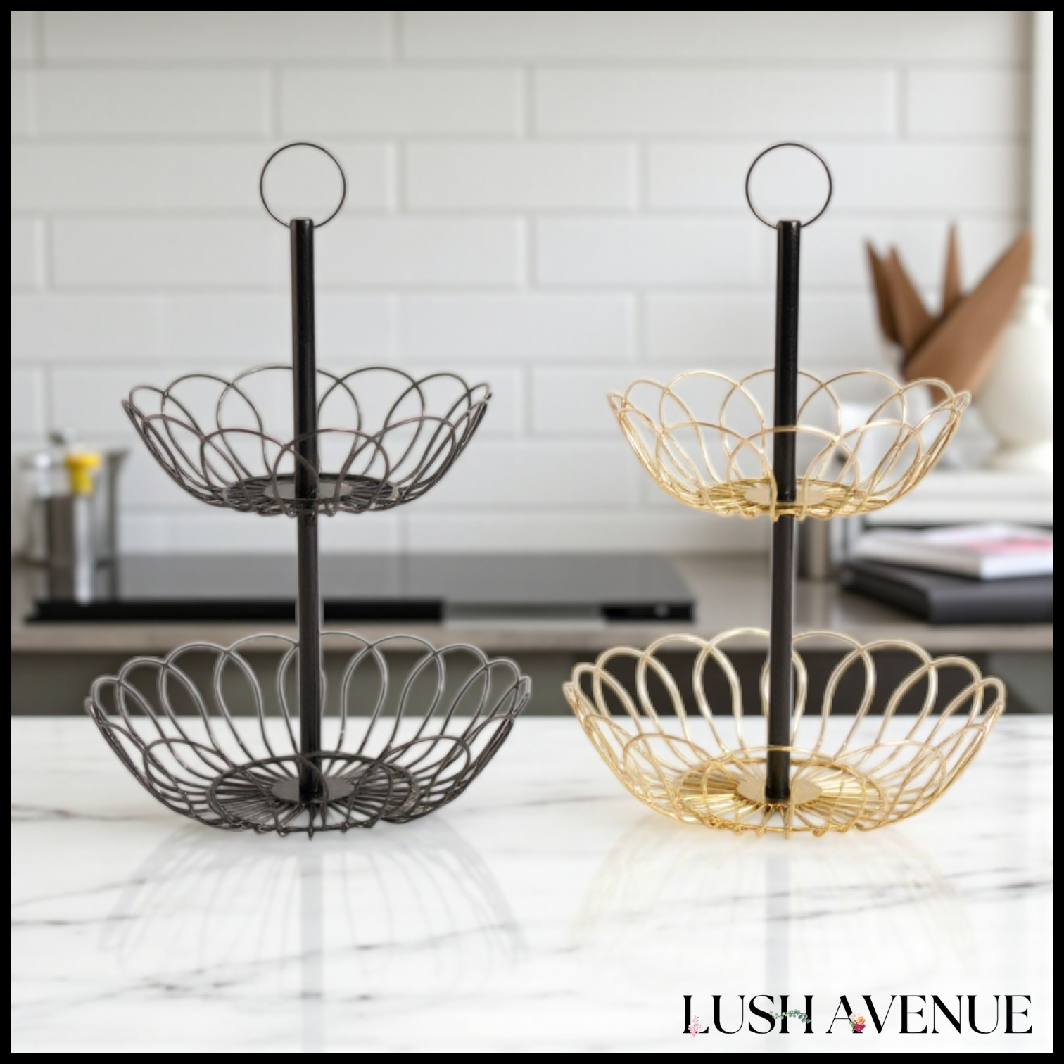 Two-Tier Design: Offers ample storage space without taking up too much counter area — perfect for organizing apples, oranges, bananas, and more.