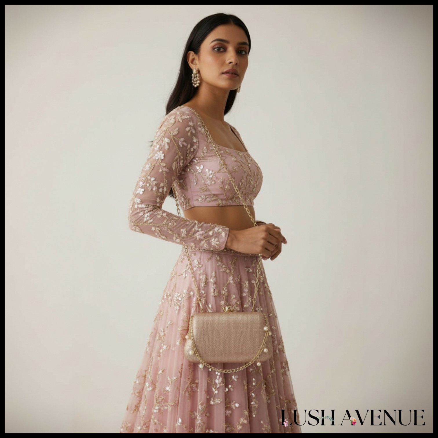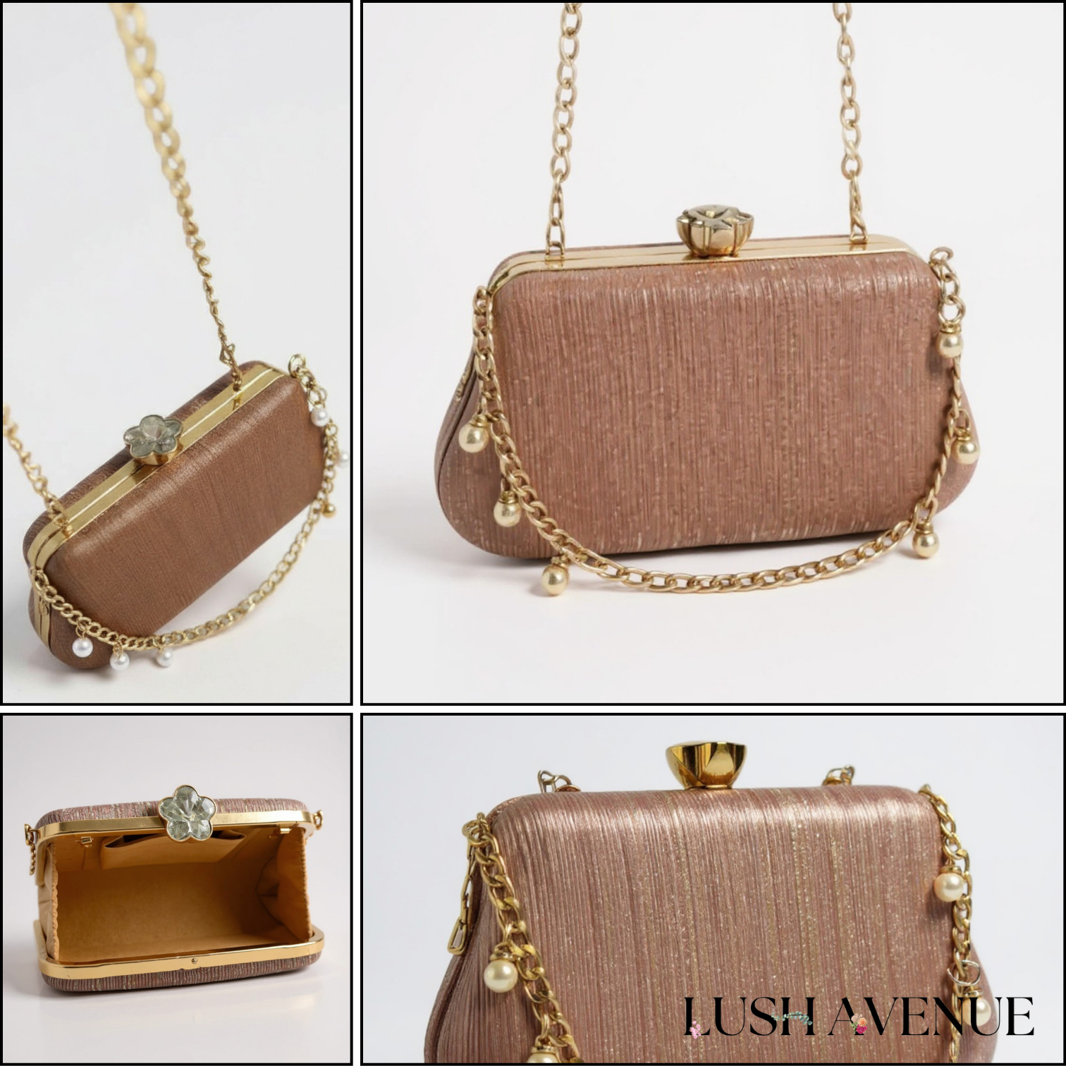 Elevate your evening ensemble with this sophisticated glittery rose clutch, designed for those who appreciate refined elegance. Crafted with meticulous attention to detail, the shimmering embellishments catch light beautifully, creating an understated yet striking accessory. The compact silhouette fits essentials effortlessly while maintaining a polished aesthetic perfect for formal occasions, cocktail events, or upscale gatherings. Premium construction ensures durability without compromising on style, making this clutch a versatile addition to your luxury accessories collection.